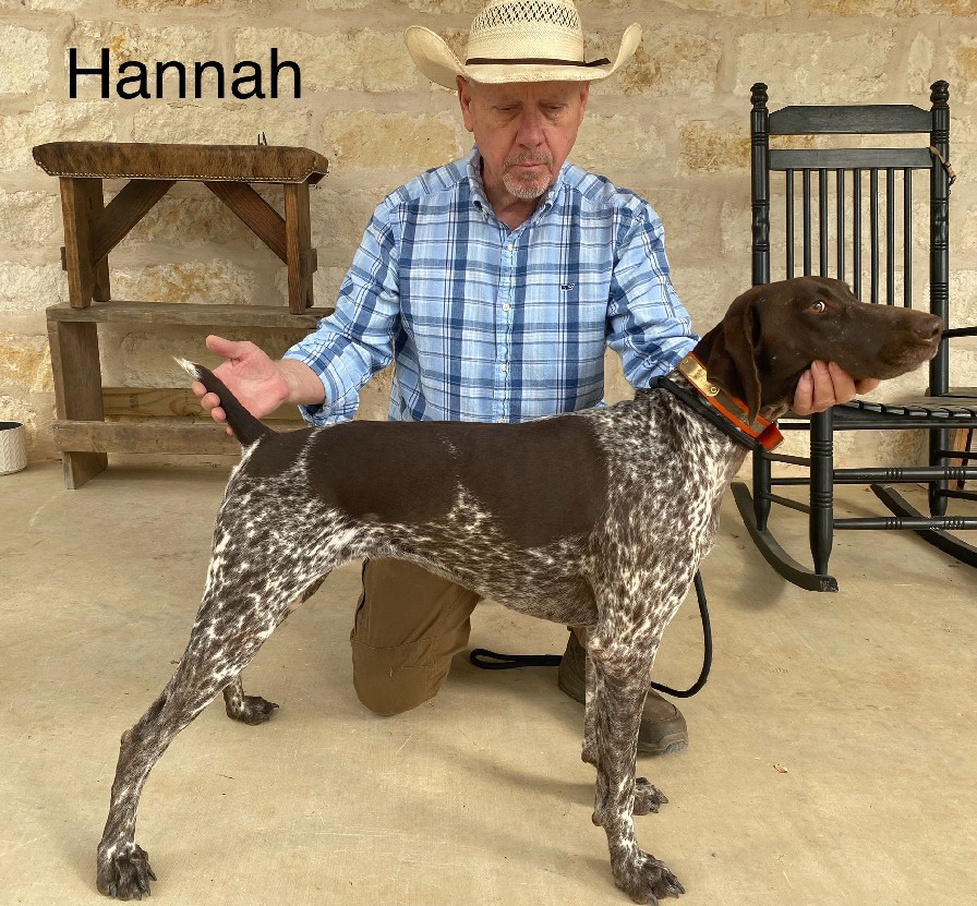 Hannah is out a long bloodline of our very best proven females going back five generations. Excellent in the field and at home with family. Beautiful on point, easily handled, plenty of drive and natural instinct combined with desire to please. Intelligent and quick learner. |