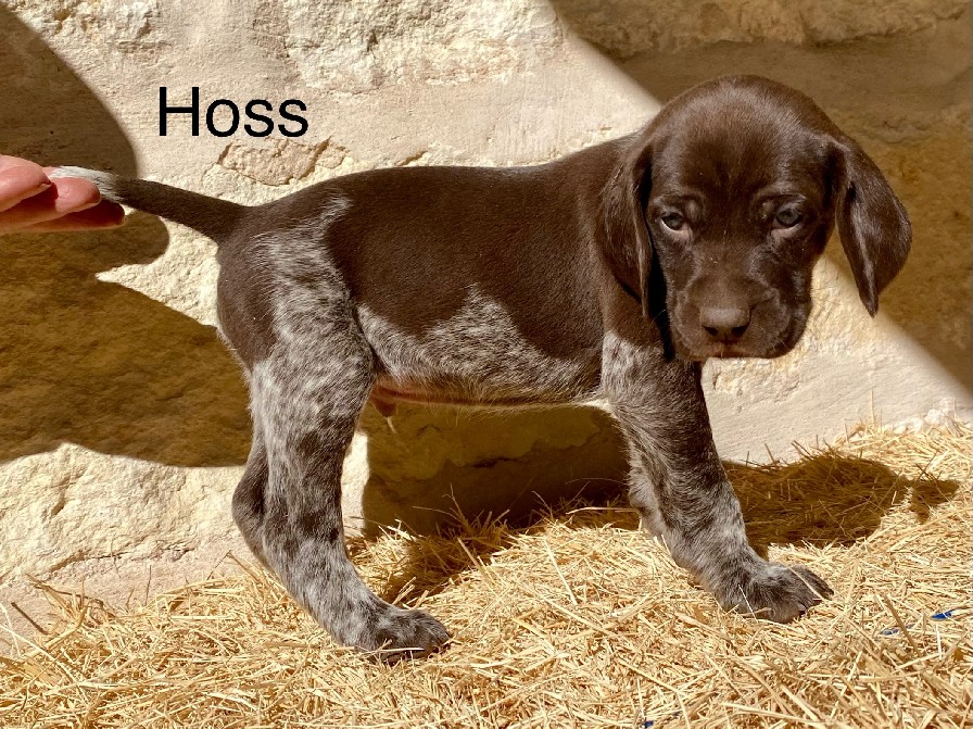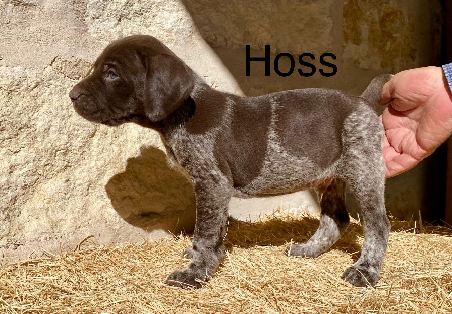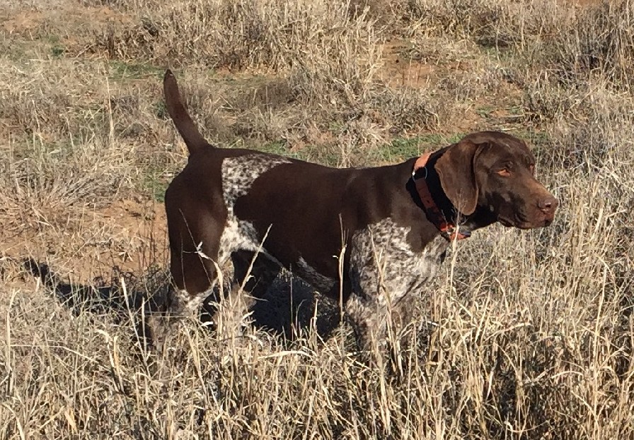 These beautiful liver roan German Shorthaired Pointer pup will have plenty of style in the field and lovable, loyal companion at home with the family. The sire, Jett, is a spectacular Solid Black GSP that is truly a versatile hunting dog. He is a natural retriever, heals off lead, backs instinctively, is steady on point and loves to please. Jett’s sire is a European Dual Champion. The dam, Sage is out of our foundation bloodlines and adds plenty to this outstanding breeding. This is a big stout, vigorous pup and will ready to go @ 8 weeks. |