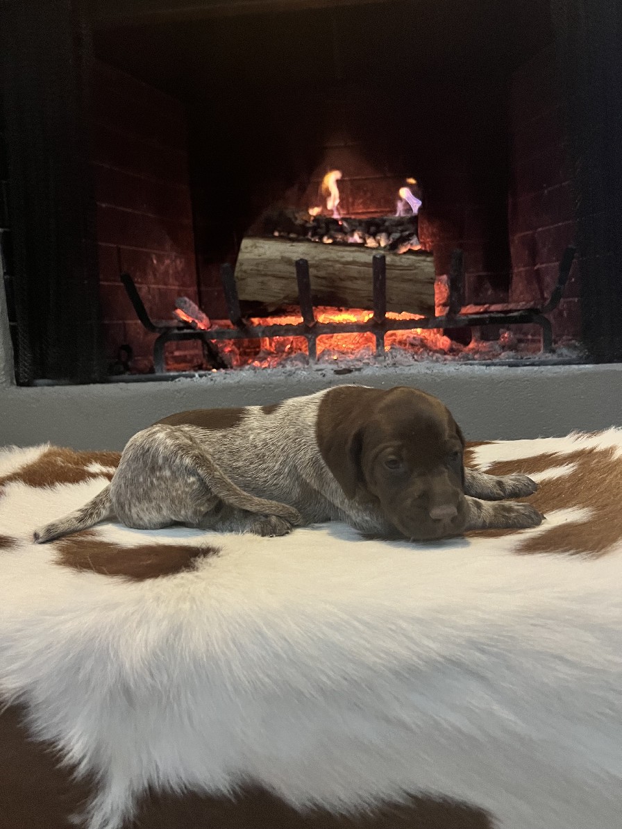 This is a great looking liver, white, with ticking German Shorthaired Pointer puppy out of Ruby and Maximillian's litter. Belle is a heavy boned pup with excellent balance and muscle. She will make a great hunter/companion. Belle is a happy pup with plenty of confidence. This pup will be an intelligent, fast learner. She will connect with her new family quickly. Healthy and happy. Current on vaccinations and ready to go. |
