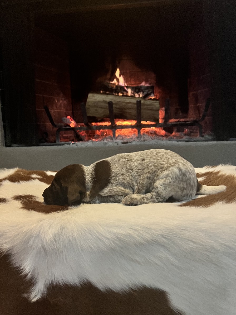 This is a great looking liver, white, with ticking German Shorthaired Pointer puppy out of Ruby and Maximillian's litter. Jane is a heavy boned pup with excellent balance and muscle. She will make a great hunter/companion. Jane is a happy pup with plenty of confidence. This pup will be an intelligent, fast learner. She will connect with her new family quickly. Healthy and happy. Current on vaccinations and ready to go. |
