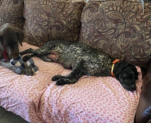 Super sweet girl with plenty of desire to please. Easily managed at home and in the field. Super smart and fast learner. Winky is a nice size at 50 lbs. she’s produced outstanding pups with great Shorthair characteristics. She’s a great all around GSP.